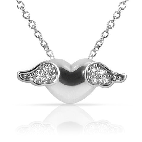 This gorgeous pendant features incredible detail with subtle hearts through the front and sides. A series of our high grade CZ stones accent the piece beautifully. This is a very impressive necklace for yourself or as a gift. This beautiful necklace is hand made out of fine sterling silver with attention to detail. It has been finished in rhodium just like white gold jewelry for a lustrous and rich look. It is virtually identical to white gold and diamond jewelry. The necklace is adjustable from 16-18 inches in length.